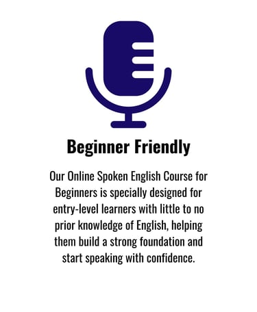 Our Online Spoken English Course for Beginners is specially designed for entry-level learners with little to no prior knowledge of English, helping them build a strong foundation and start speaking with confidence.